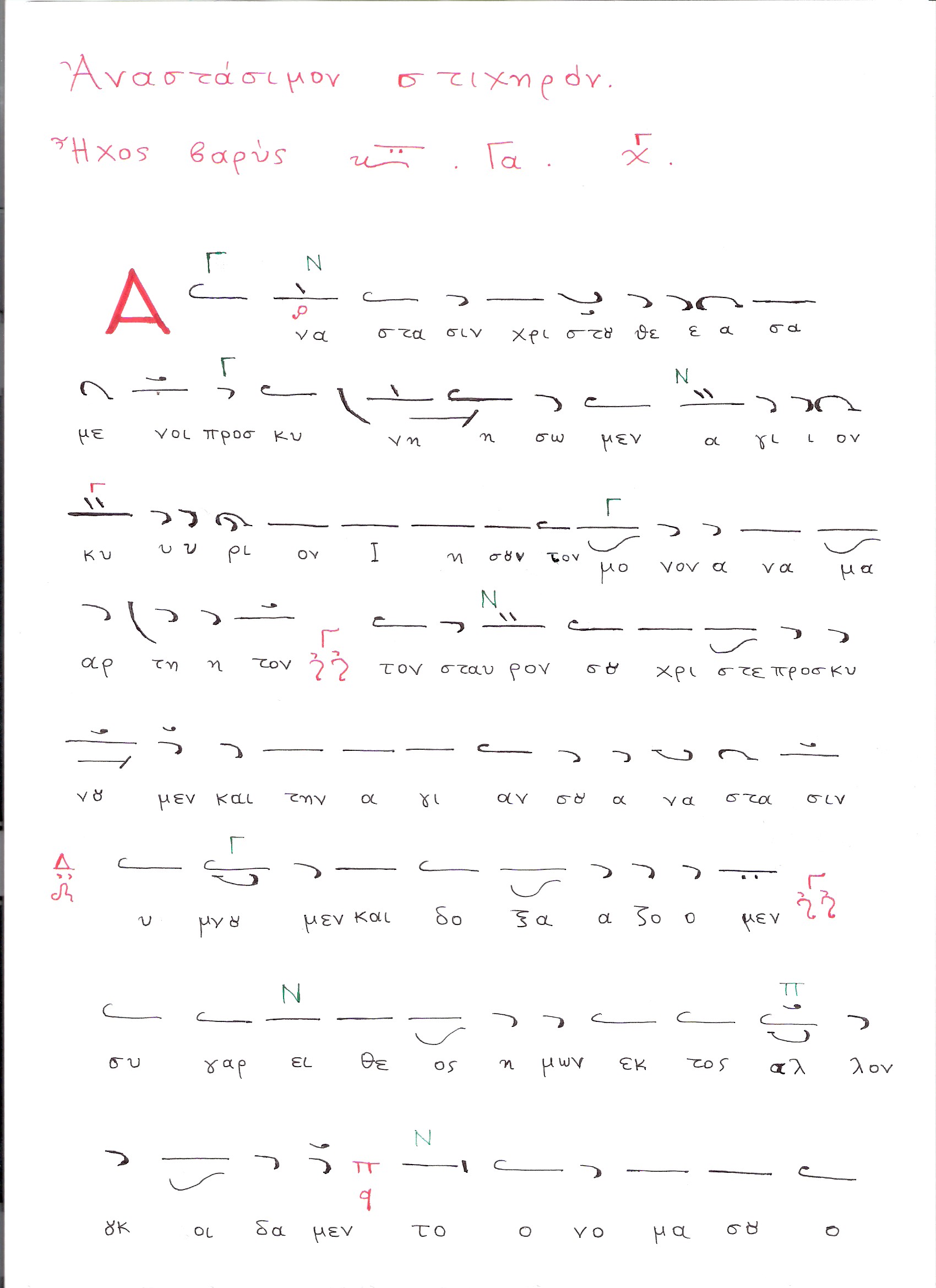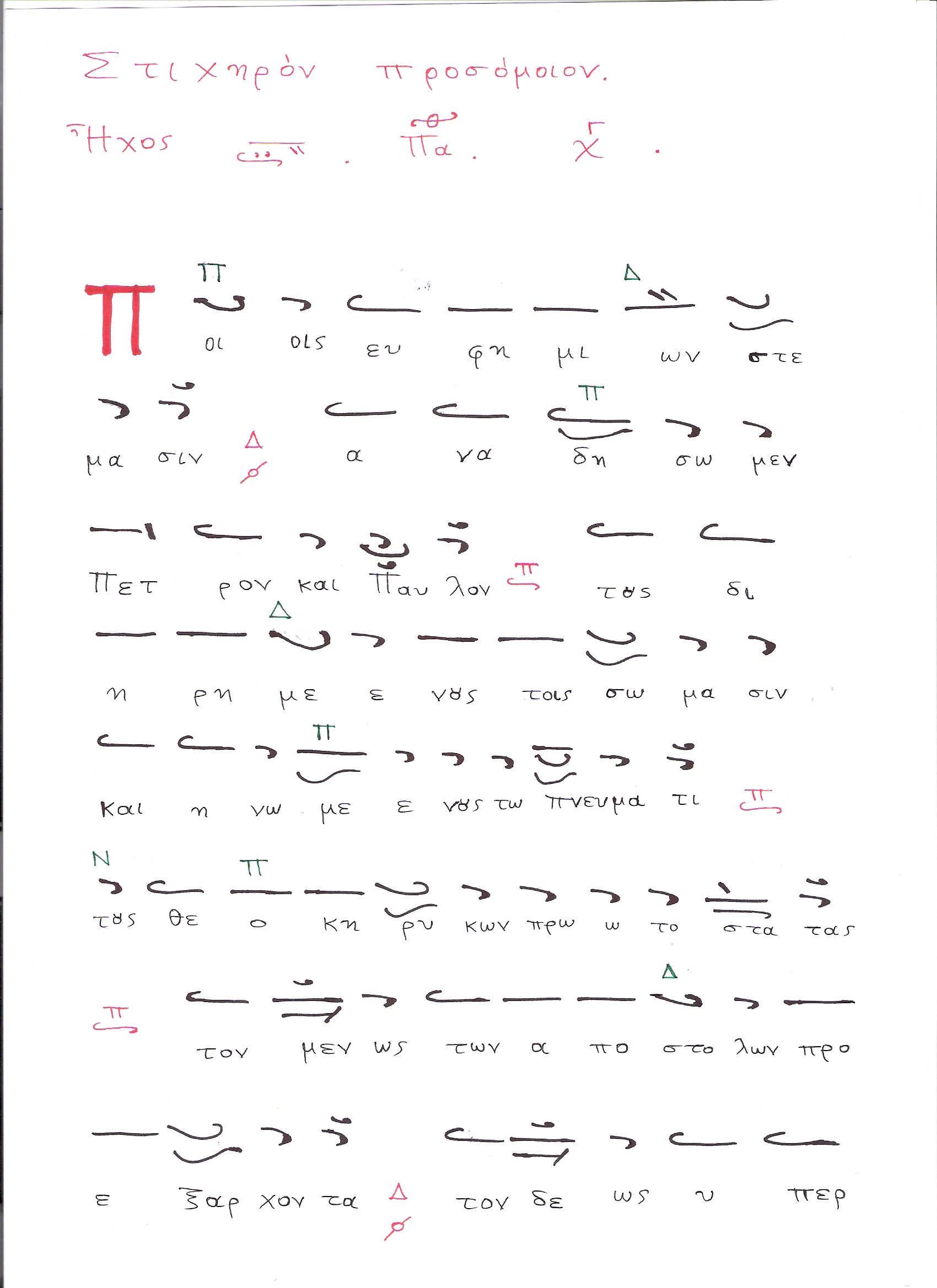 Μιὰ δική μου προέκταση τοῦ β' συντόμου στιχηροῦ τῶν αἴνων τοῦ βαρέος ἤχου Πέτρου λαμπαδαρίου, ἔκδ. 1820. Βλ. καὶ viewtopic.php?f=156&t=99