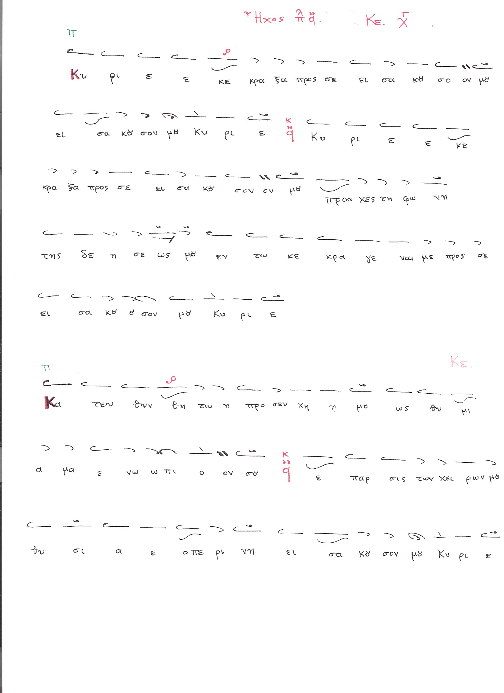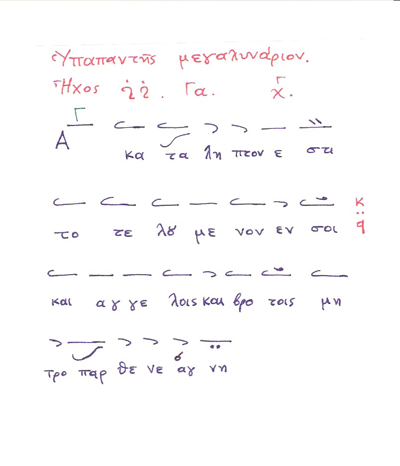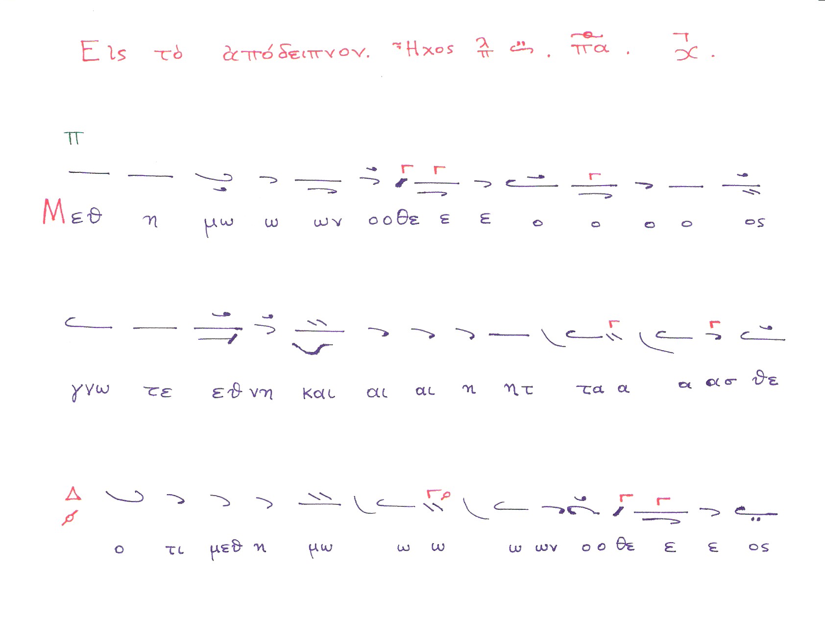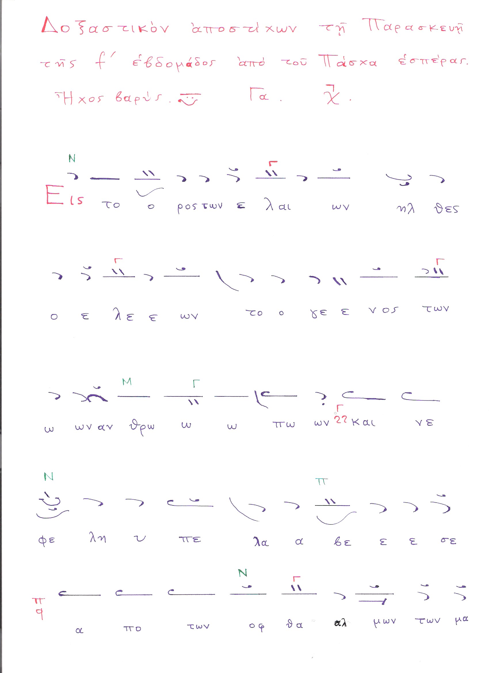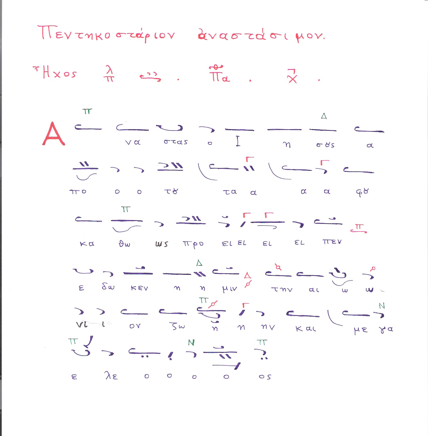 «...Εἶτα στίχος εἰς ἦχον πλ. β’, ὁμοῦ οἱ δύο χοροί· ᾿Ελέησόν με, ὁ Θεός, κατὰ τὸ μέγα ἔλεός σου, καὶ ψάλλομεν στιχηρὸν ἀναστάσιμον· ᾿Αναστὰς ὁ ᾿Ιησοῦς...» (τυπικὸν Ἱ. Μ. Διονυσίου τοῦ ἔτους 1841 ἔκδ. Dmitrievskij τ. 3 σ. 567· ὁμοίως Δ. Μπαλαγεώργου Ἡ ψαλτικὴ παράδοση τῶν ἀκολουθιῶν τοῦ βυζαντινοῦ κοσμικοῦ τυπικοῦ σσ. 250-251, Γ. Στάθη Οἱ ἀναγραματισμοὶ καὶ τὰ μαθήματα τῆς βυζαντινῆς μελοποιΐας σσ. 177, 180, 197, Ε. Σπυράκου Οἱ χοροὶ ψαλτῶν κατὰ τὴν βυζαντινὴ παράδοση σ. 359, καὶ Ἰ. Φουντούλη Λειτουργικὴ τεῦχος ε' Ἀκολουθίαι τοῦ νυχθημέρου 1969 σ. 117).