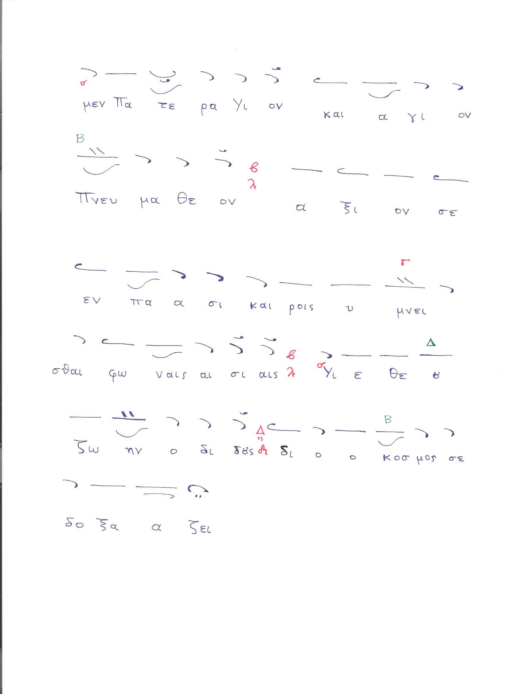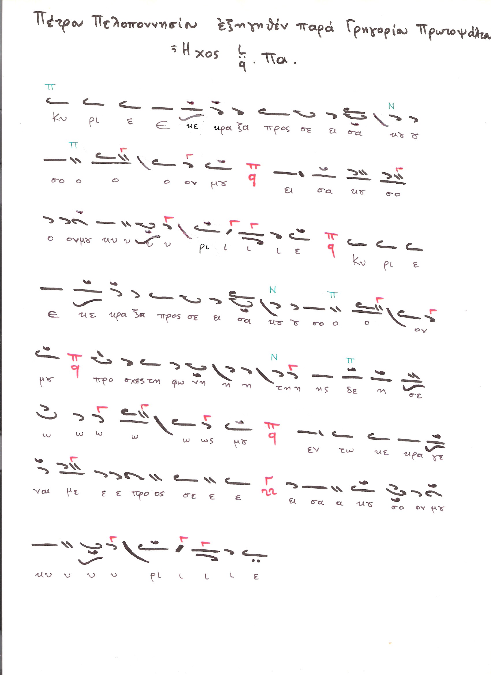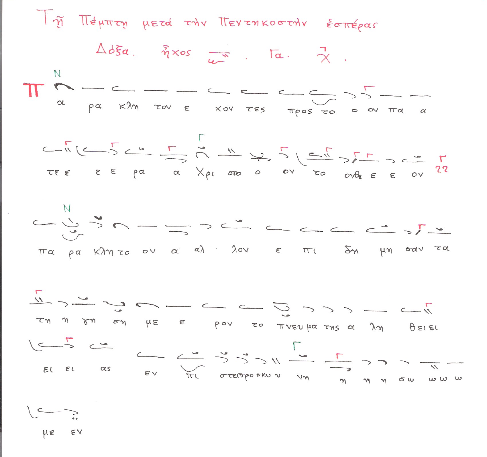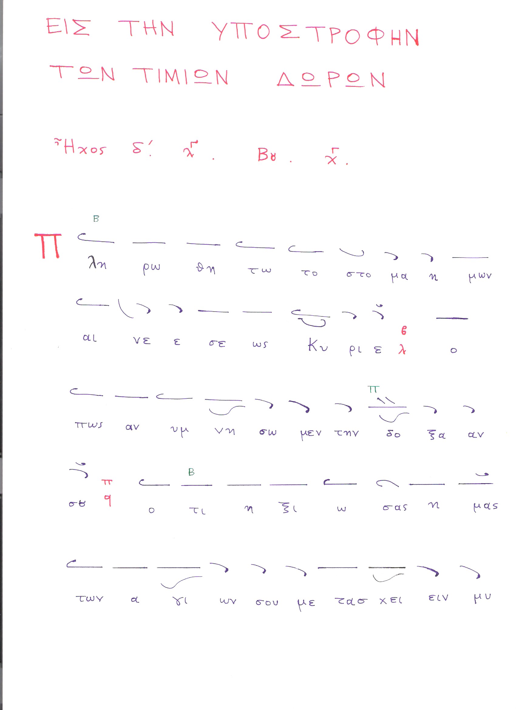 «...Εἶτα στίχος εἰς ἦχον πλ. β’, ὁμοῦ οἱ δύο χοροί· ᾿Ελέησόν με, ὁ Θεός, κατὰ τὸ μέγα ἔλεός σου, καὶ ψάλλομεν στιχηρὸν ἀναστάσιμον· ᾿Αναστὰς ὁ ᾿Ιησοῦς...» (τυπικὸν Ἱ. Μ. Διονυσίου τοῦ ἔτους 1841 ἔκδ. Dmitrievskij τ. 3 σ. 567· ὁμοίως Δ. Μπαλαγεώργου Ἡ ψαλτικὴ παράδοση τῶν ἀκολουθιῶν τοῦ βυζαντινοῦ κοσμικοῦ τυπικοῦ σσ. 250-251, Γ. Στάθη Οἱ ἀναγραματισμοὶ καὶ τὰ μαθήματα τῆς βυζαντινῆς μελοποιΐας σσ. 177, 180, 197, Ε. Σπυράκου Οἱ χοροὶ ψαλτῶν κατὰ τὴν βυζαντινὴ παράδοση σ. 359, καὶ Ἰ. Φουντούλη Λειτουργικὴ τεῦχος ε' Ἀκολουθίαι τοῦ νυχθημέρου 1969 σ. 117).