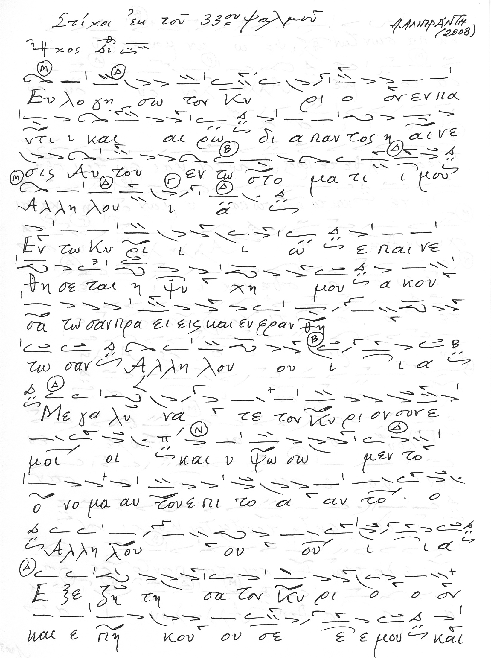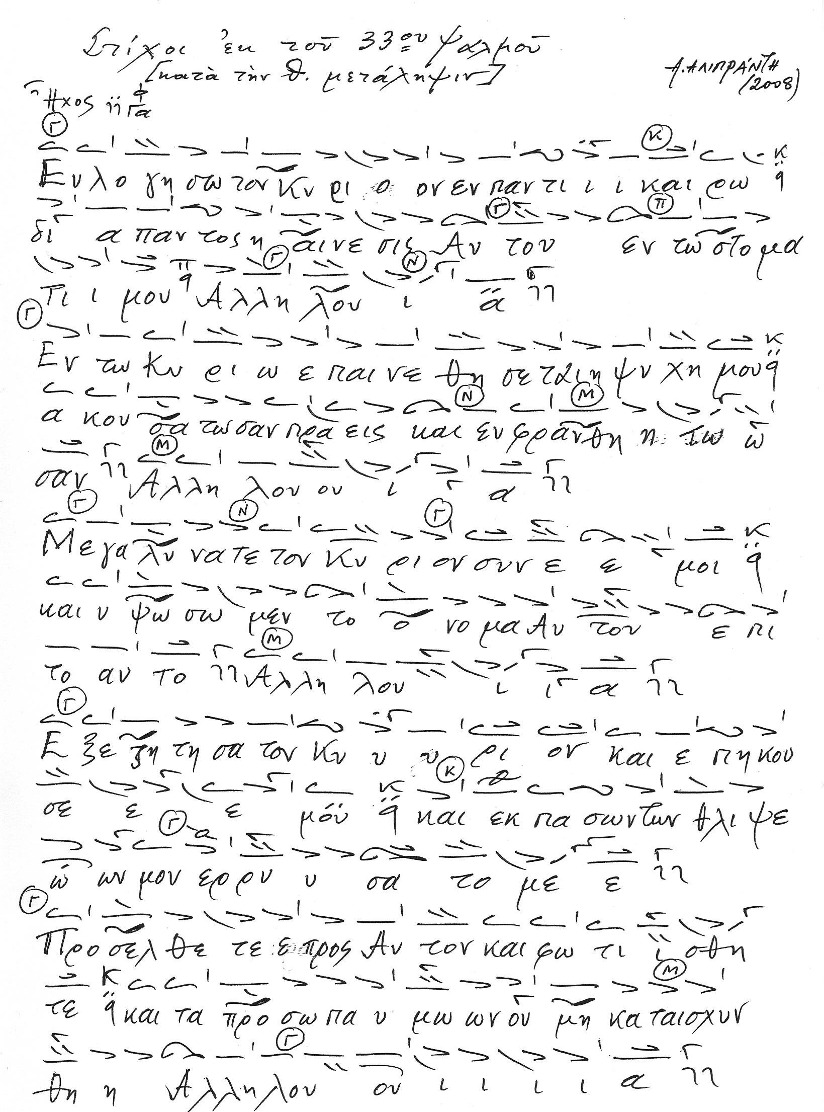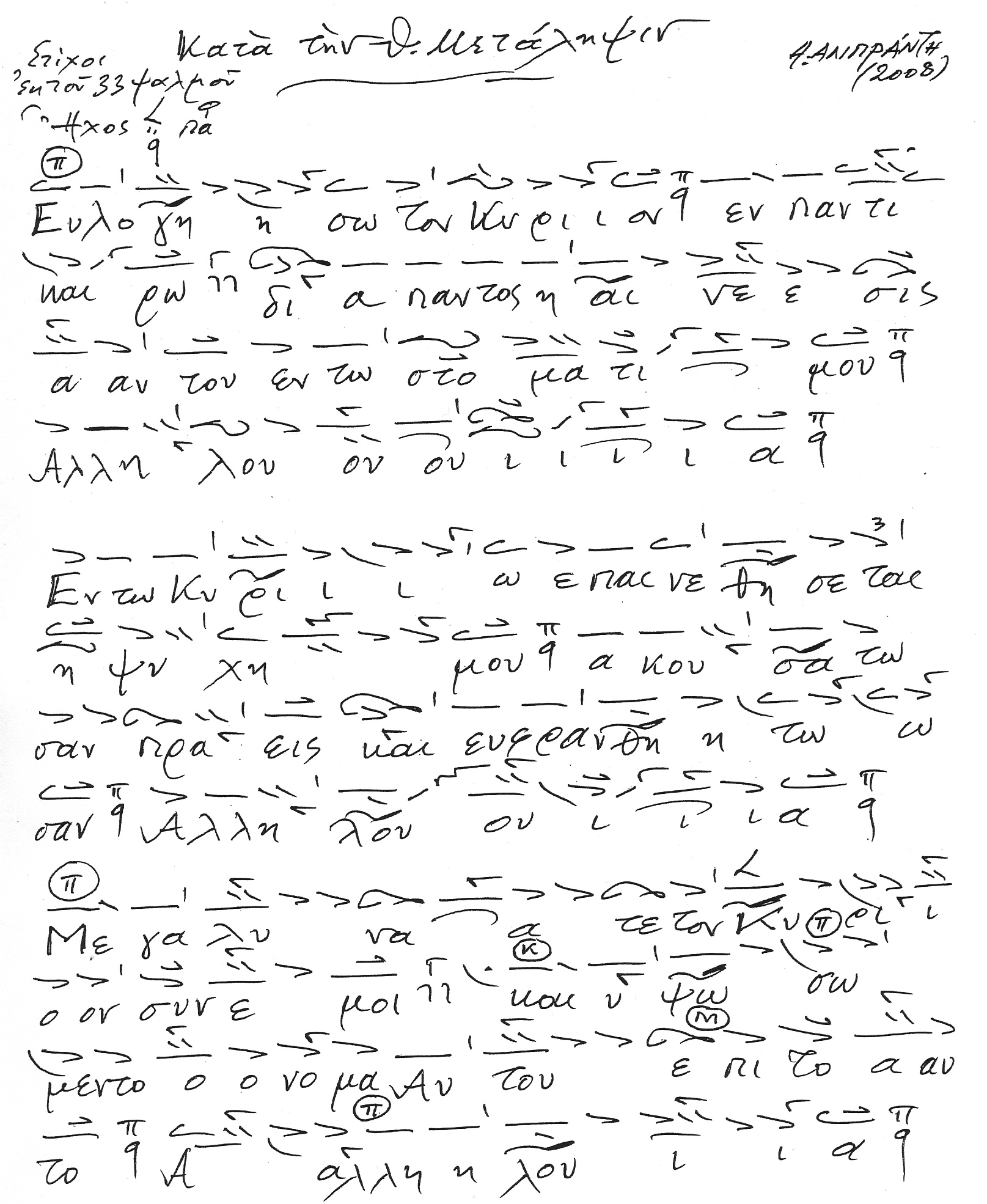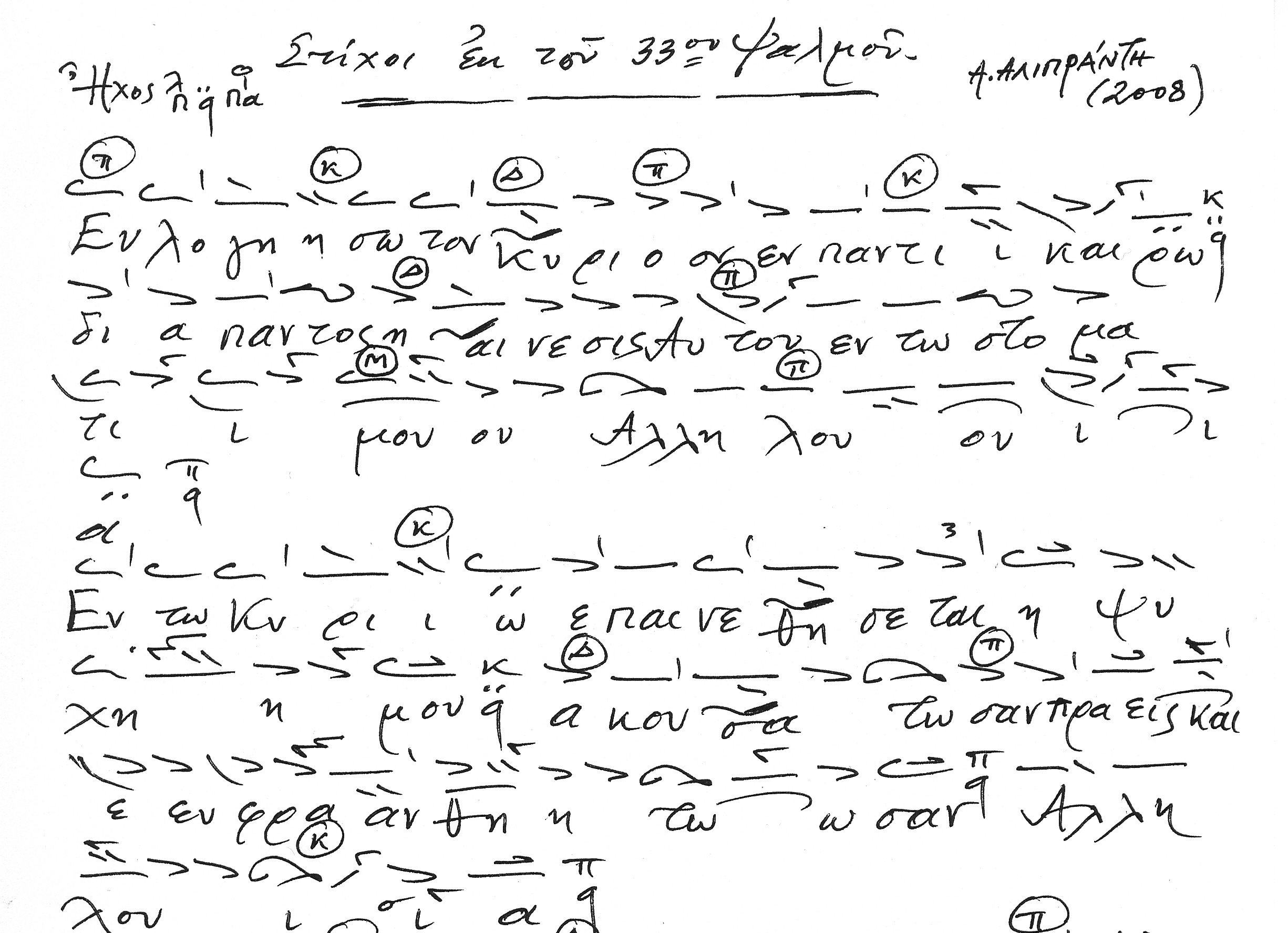 Ἦχος α΄, μελοποίησις ᾿Ανδρέου ᾿Αλιπράντη (2008).