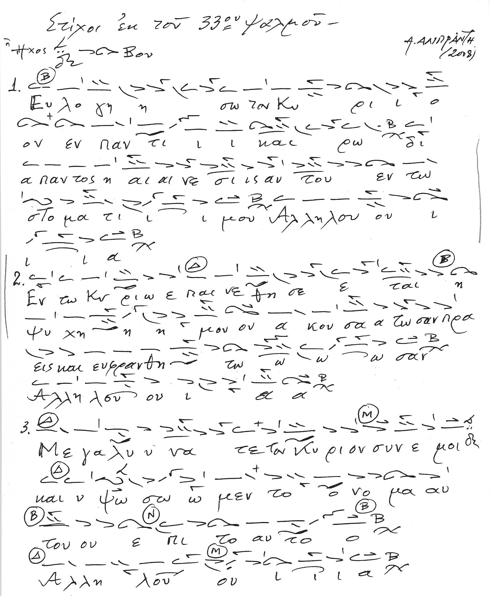 Ἦχος β΄, μελοποίησις ᾿Ανδρέου ᾿Αλιπράντη (2008).