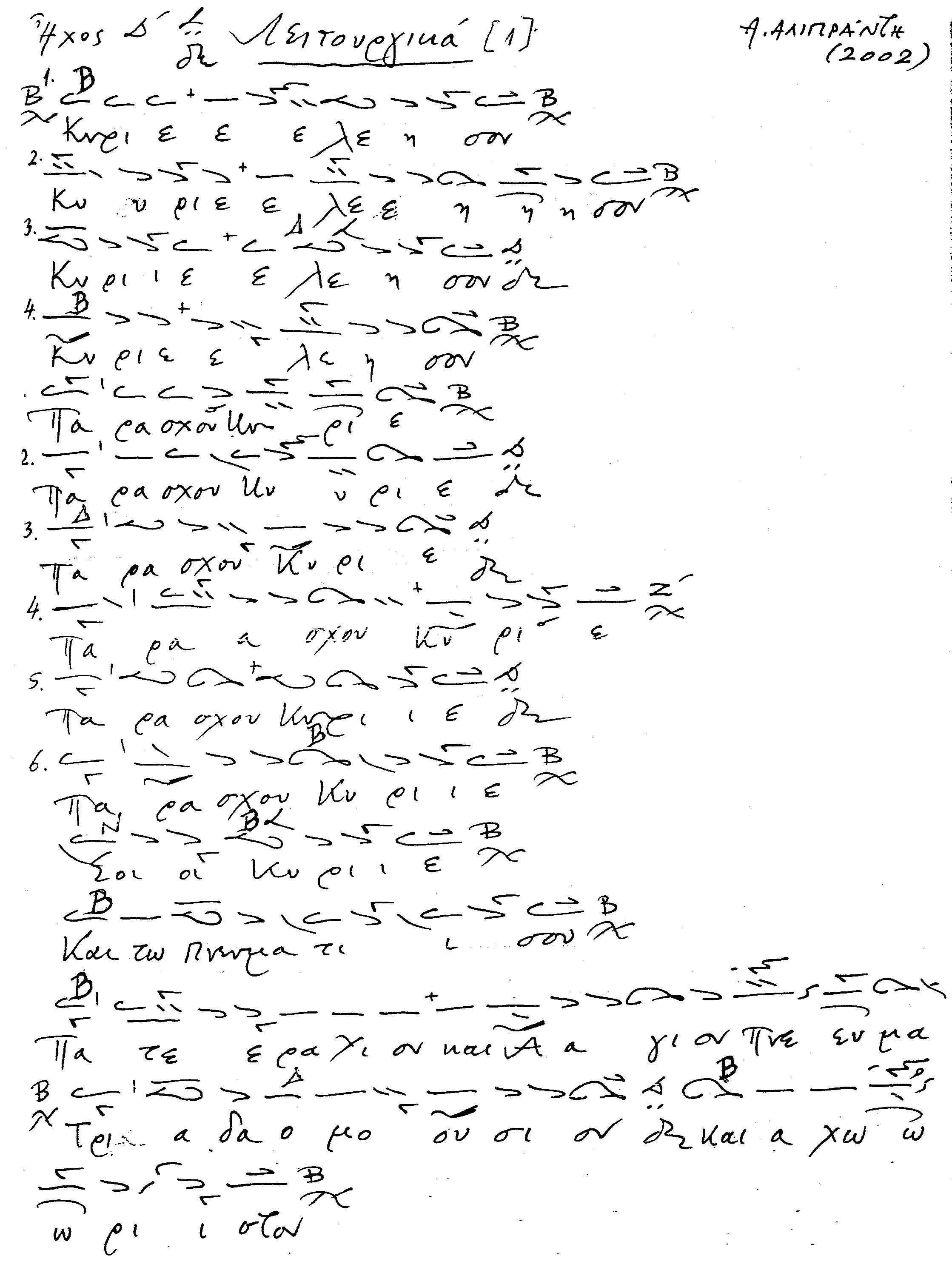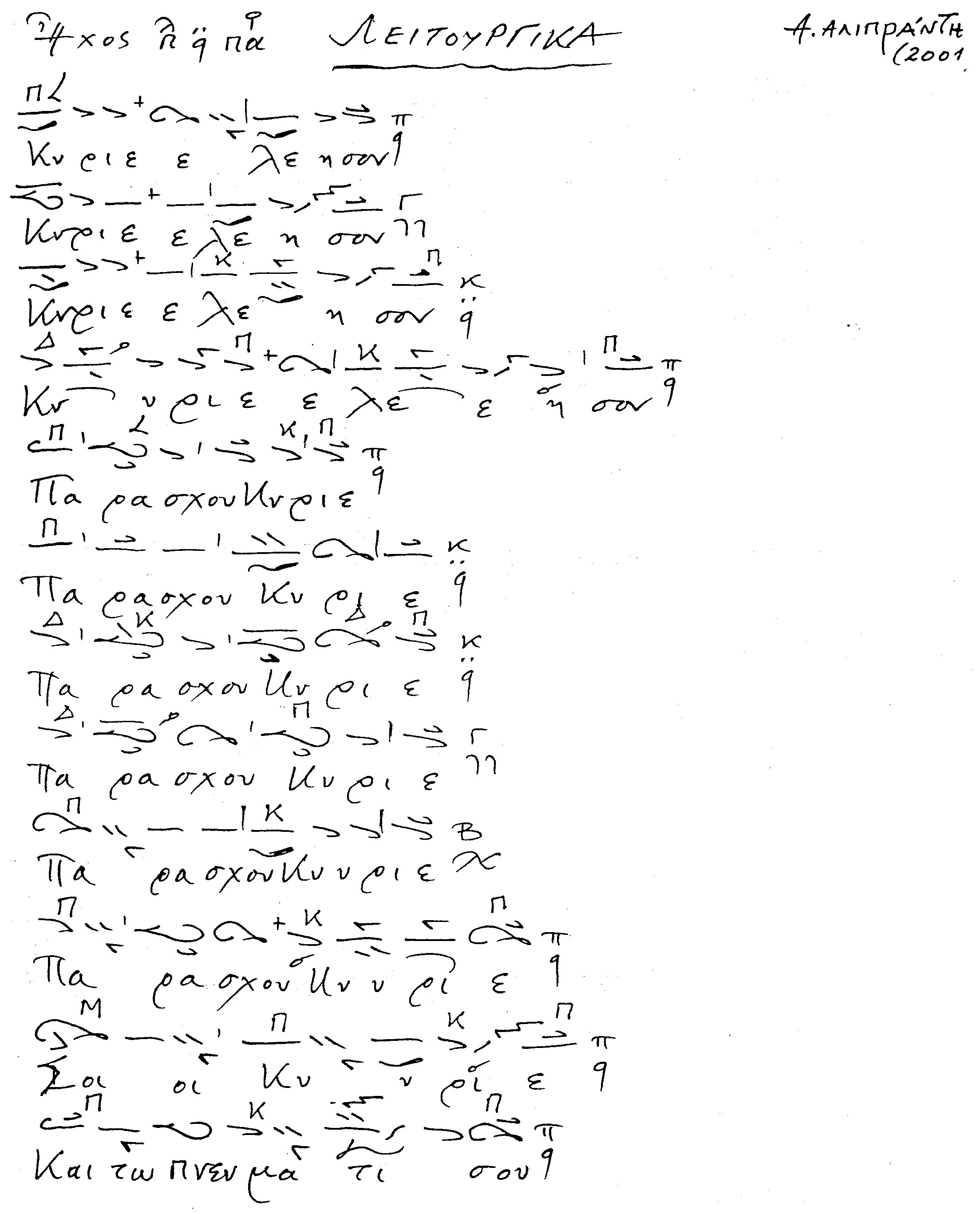Λειτουργικά, ἦχος πλ. α΄, ὑπὸ ᾿Ανδρέου ᾿Αλιπράντη (2001-2002)