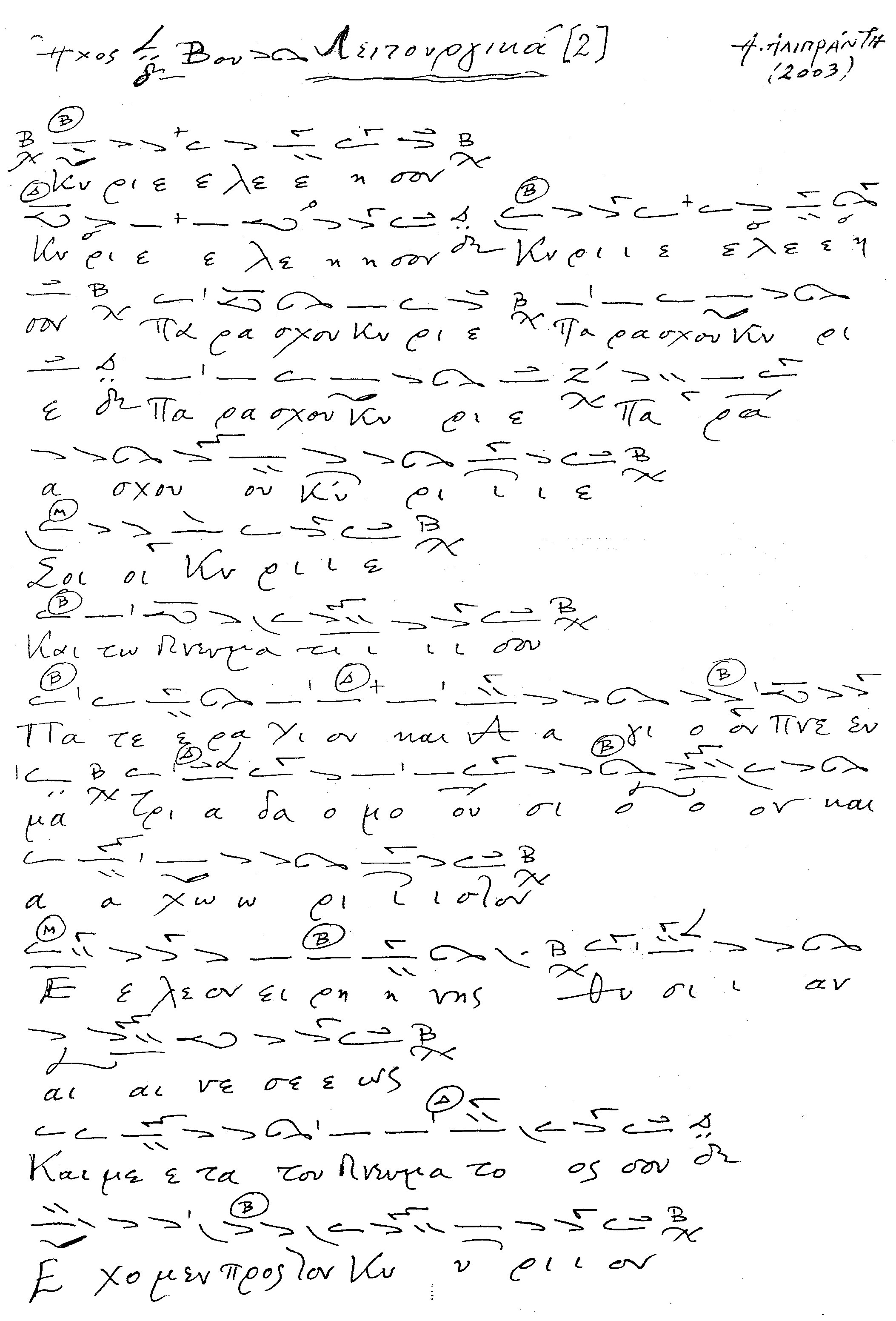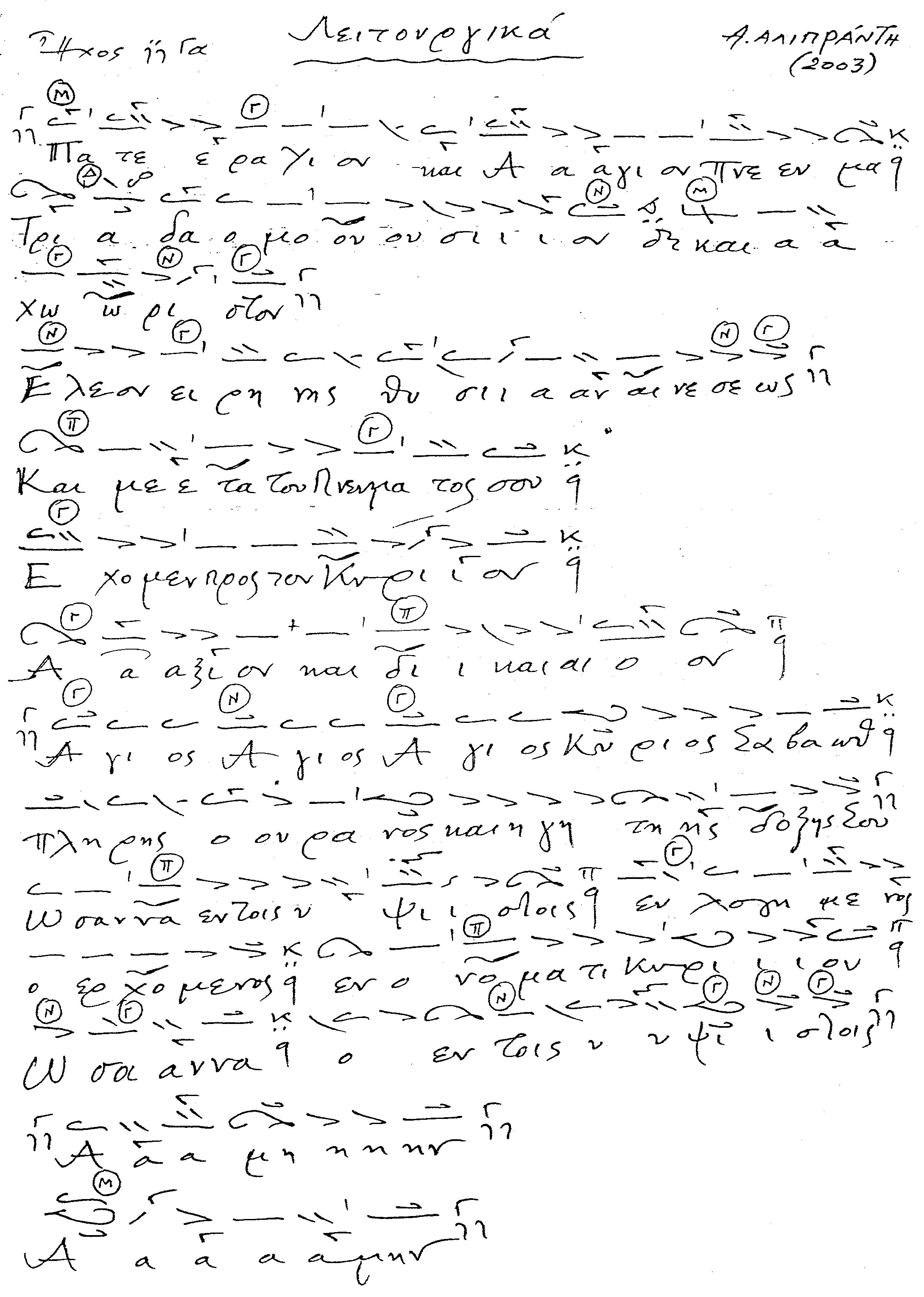 Λειτουργικά, ἦχος λέγετος (ἕτερα), ὑπὸ ᾿Ανδρέου ᾿Αλιπράντη (2003)