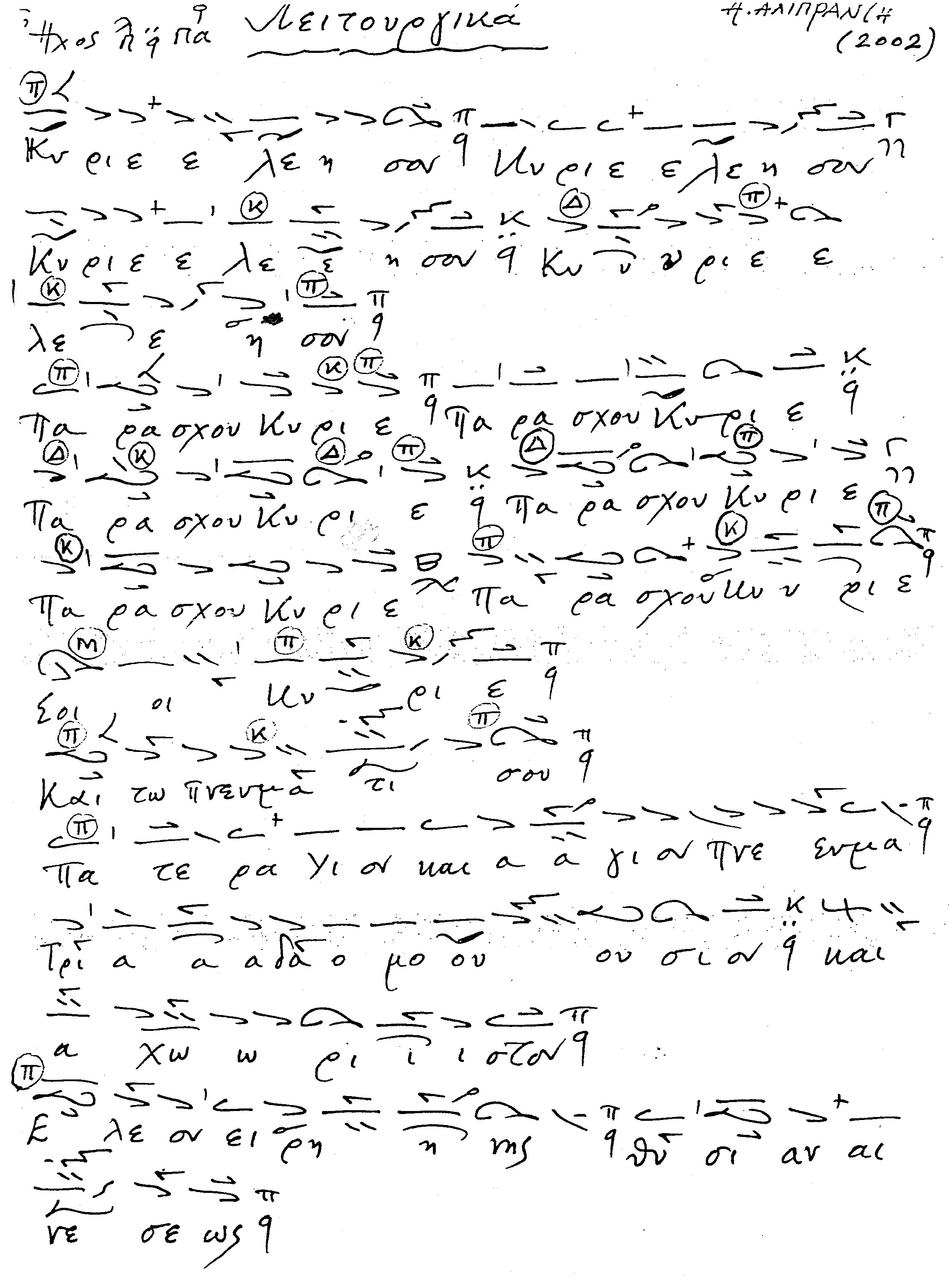 Λειτουργικά, ἦχος λέγετος, ὑπὸ ᾿Ανδρέου ᾿Αλιπράντη (2002)
