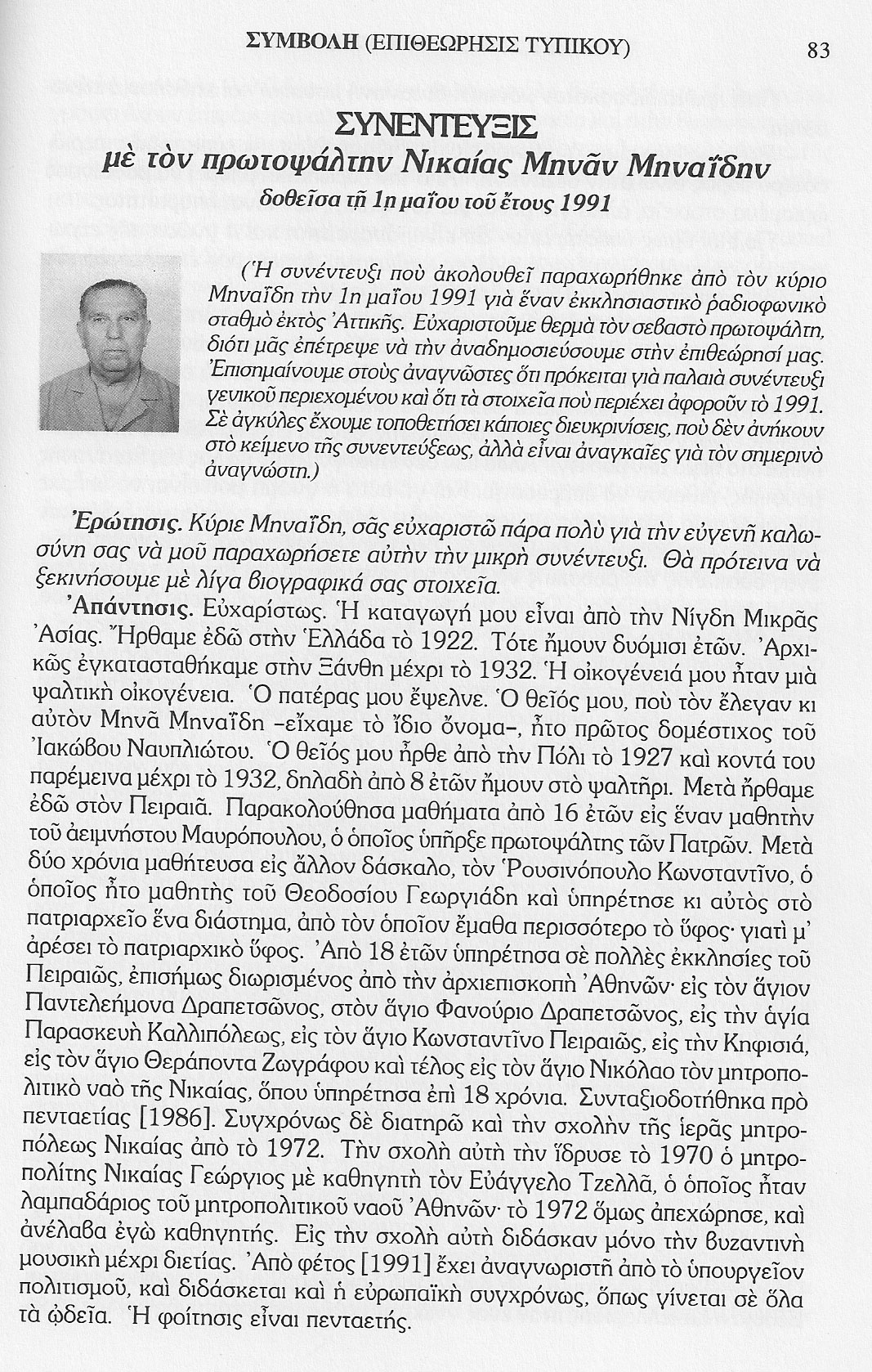 Αφιερωμα στον παλαιμαχο εκ Μικρας Ασιας Πρωτοψαλτη Μηνα Μηναϊδη .