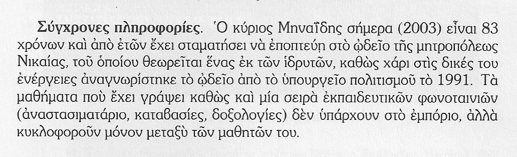 α) διότι σὲ ὅλον τὸν κόσμο μόνον ἕνας ἄνθρωπος ἔχει ἠχογραφημένη αὐτὴν τὴν συνέντευξι τοῦ Μηνᾶ Μηναΐδη· ὁ ὑποφαινόμενος ὁ ὁποῖος καὶ πραγματοποίησα τὴν συνέντευξι καὶ τὴν ἠχογράφησί της πρὶν ἀπὸ 18 χρόνια,
