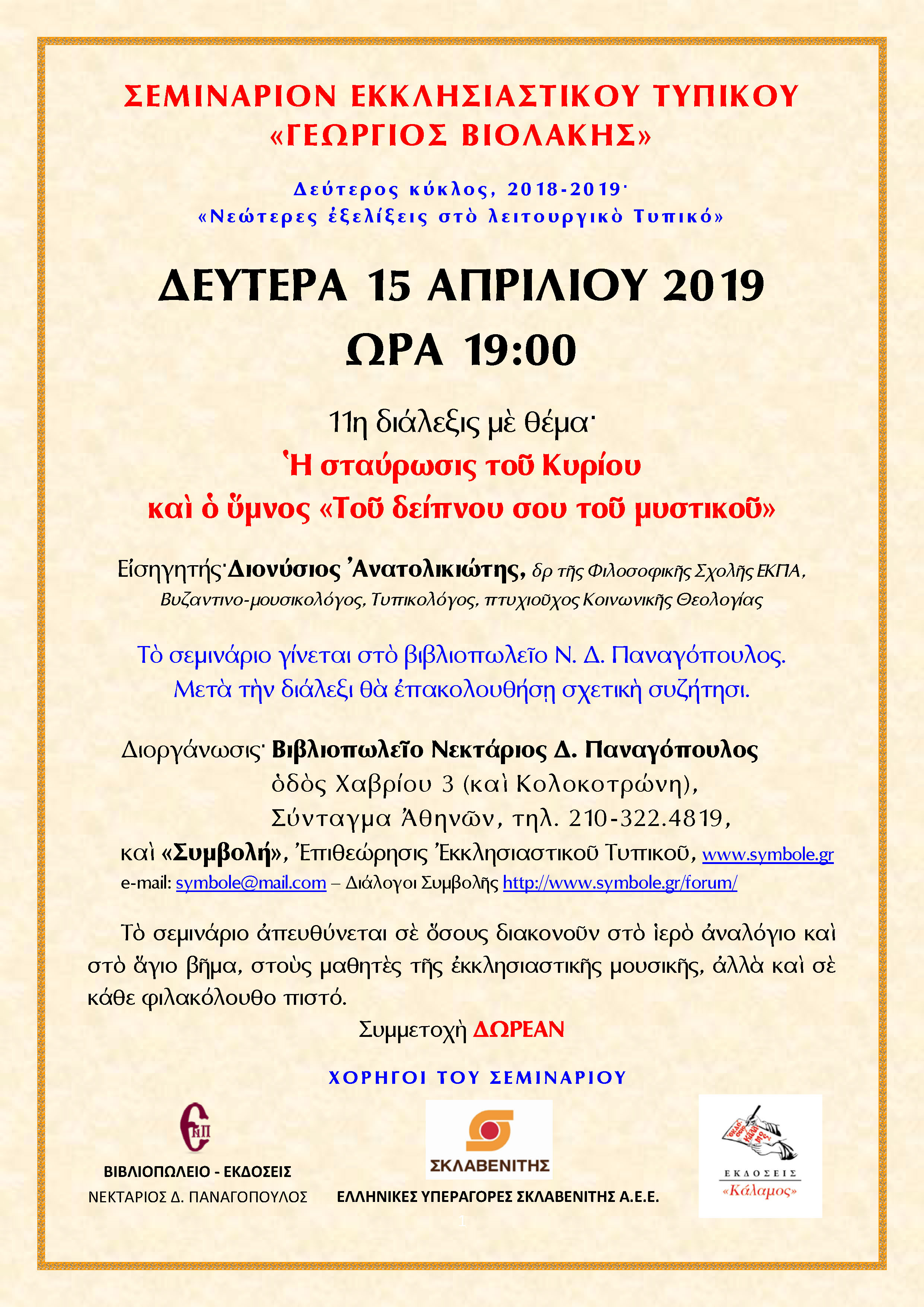 Re: Σεμινάριον ᾿Εκκλησιαστικοῦ Τυπικοῦ στήν ᾿Αθήνα 2018-2019
