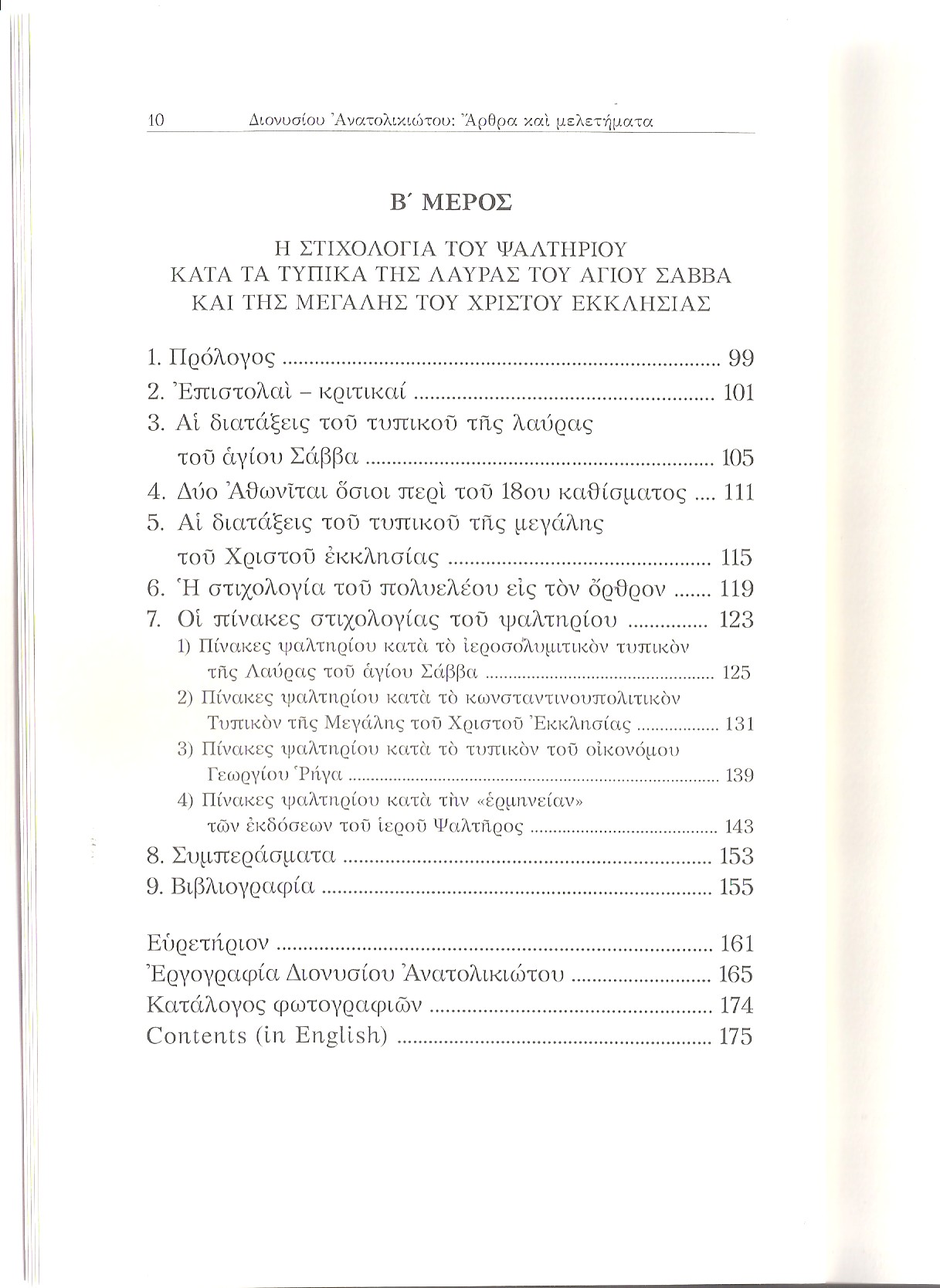 Διονυσίου Ἀνατολικιώτου Ἄρθρα καὶ μελετήματα γιὰ τὸ Τυπικὸ τοῦ ἁγίου Σάββα