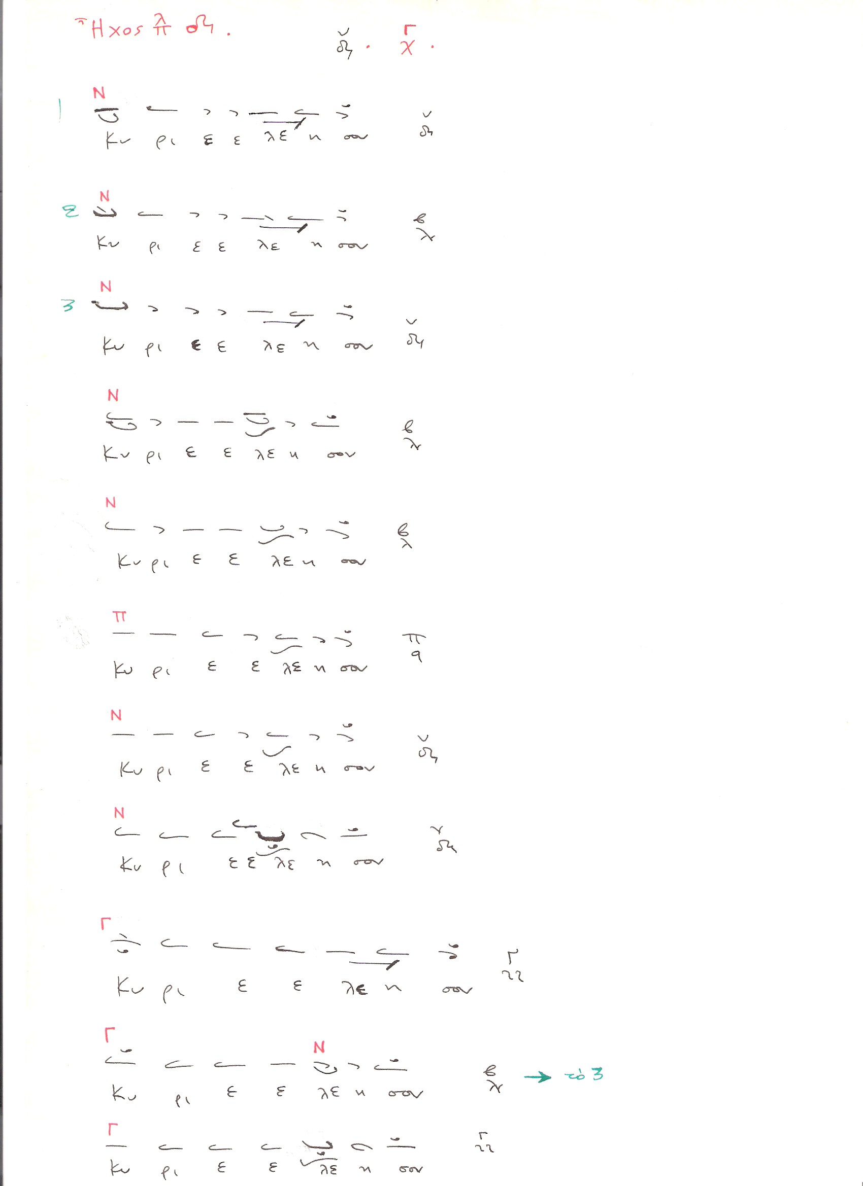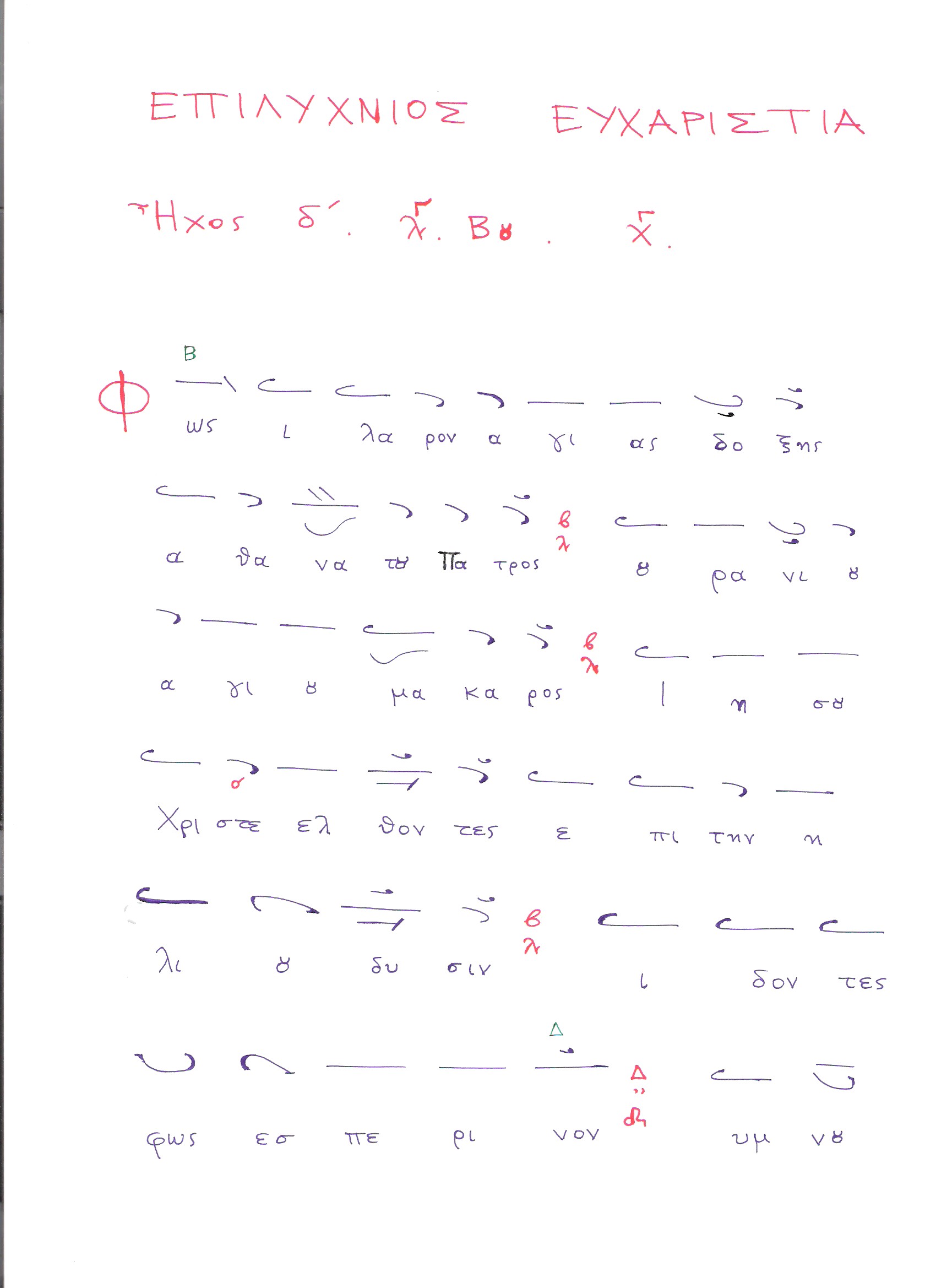 Ἦχος α' κατὰ τὰ παλαιὰ χφφ. ἀπὸ τοῦ ζ' αἰ. Βλ. Συμβολὴ τ. 25.