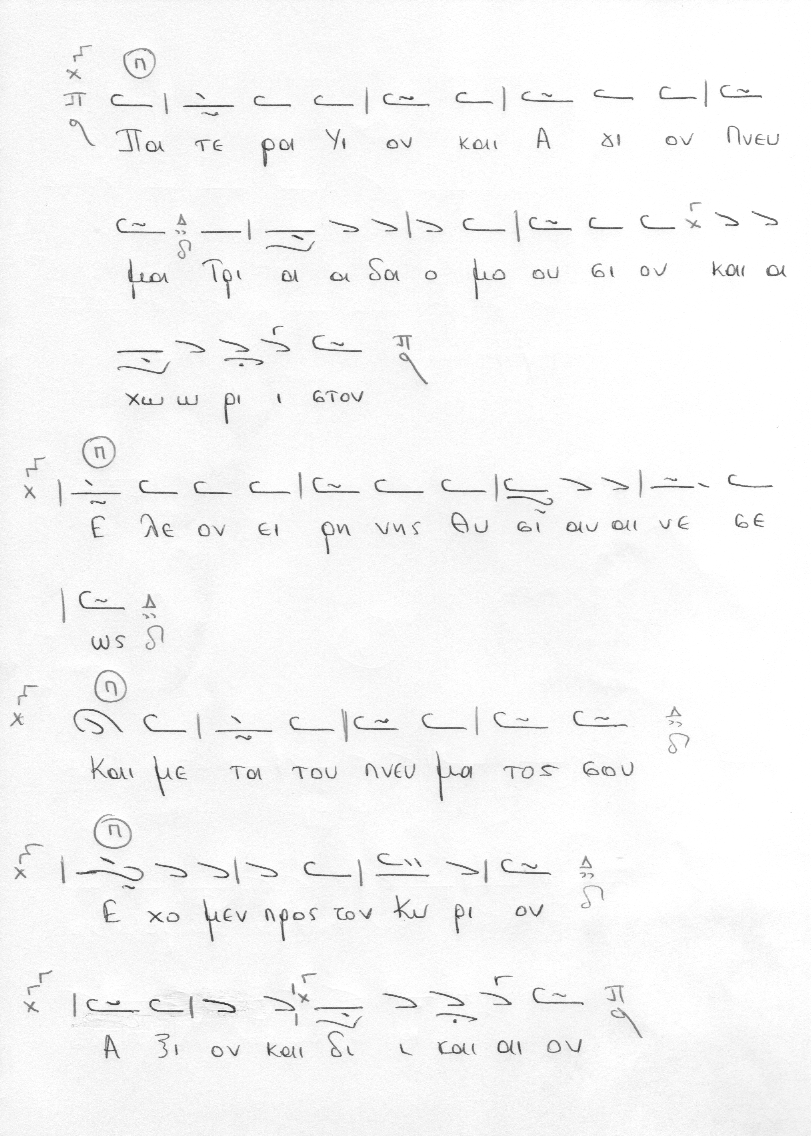 Ανεβάζω λειτουργικά "εκφωνητικά" σε ήχο α'. Τα συγκεκριμένα "ταιριάζουν" με το "Άξιον εστί" του Γρηγορίου χωρίς να είναι βέβαια αναγκαία μια τέτοια "σύνδεση". Η καταγραφή τόσο λιτών μελών είναι βοήθημα για την κάπως "χορική" απόδοση των συγκεκριμένων απαντήσεων/ύμνων του λαού.