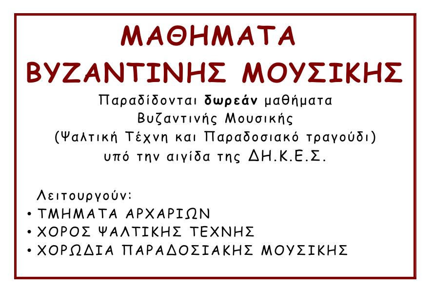 Συνεχίζονται και φέτος τα μαθήματα Βυζαντινής Μουσικής [Ψαλτική Τέχνη και Παραδοσιακό Τραγούδι]