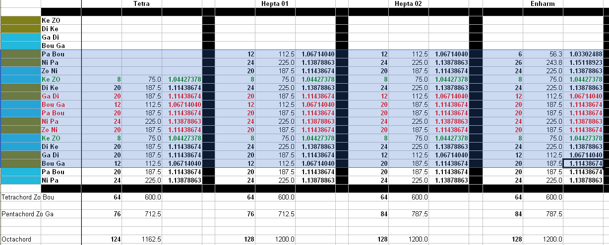 με συνολον διφωνιας εις σχεδον 354 cents (12 + 7 = 19/64 εις την 64ΕΤ κλιμακαν του Χρυσανθου