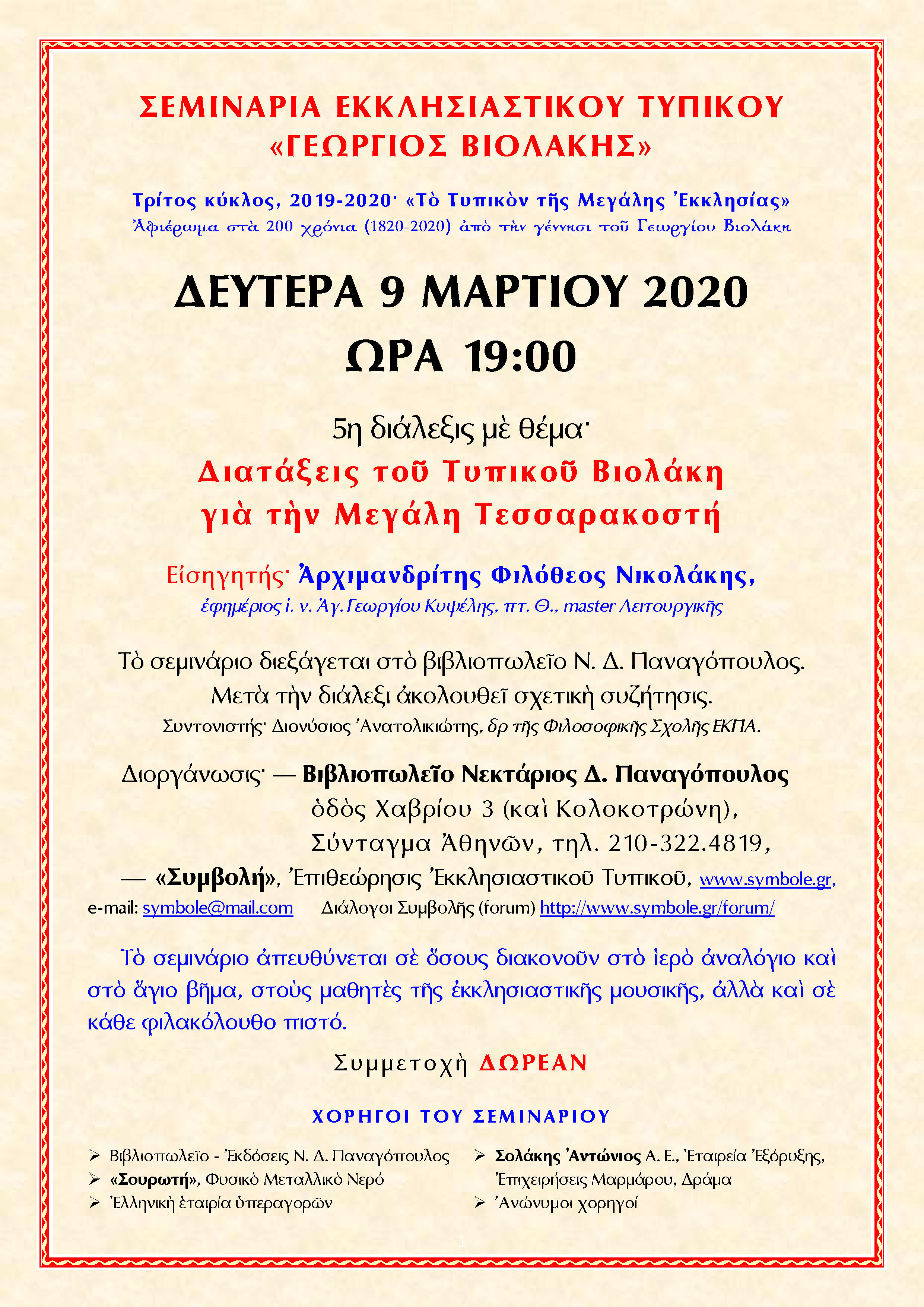 Re: Σεμινάρια Τυπικοῦ, 3ος κύκλος, ᾿Αθῆναι 2019-2020